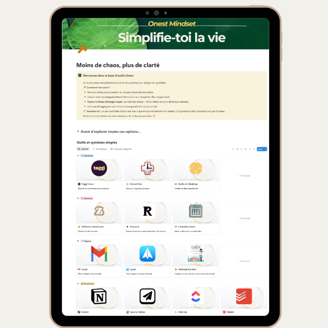 Nous n'avons pas pu confirmer votre inscription. Votre inscription est confirmée. Tu veux découvrir les bons outils et des méthodes efficaces pour vivre une semaine sereine ? Je te propose de télécharger ce tableau de bord Notion. Tu peux l'intégrer dans ton propre espace en le transformant en base "Outils". Il contient des avis sur plusieurs outils de gestion du temps et des connaissances. Adresse e-mail Renseigne ton adresse email pour t'inscrire. Ex. : abc@xyz.com La case à cocher J'accepte de recevoir tes e-mails et confirme avoir pris connaissance de ta politique de confidentialité et mentions légales. Tu peux te désinscrire à tout moment en cliquant sur le lien présent dans mes emails. J'adopte une semaine sereine